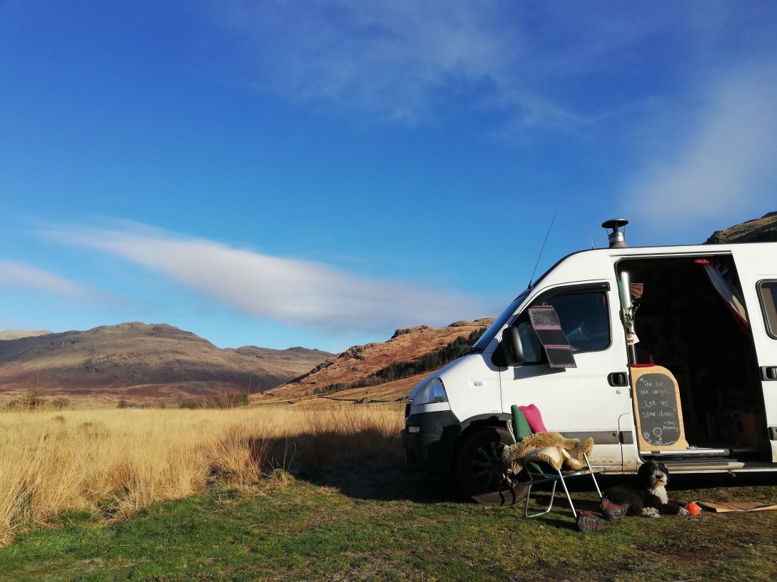 Maybe I had some idea that I might travel in a van someday. I have a vivid memory of sleeping overnight in a VW polo when I was kid, with my parents and brother. I remember standing in a gateway to a field, the sunrise creeping through the hedge, and the golden light pouring over the grass. As well as a strong visual image, it’s a felt memory. I felt content, fulfilled somehow, like nothing else mattered except that moment. Perhaps as an adult I’ve always been trying to get back to that feeling. Perhaps we all are. I think that’s why I’m doing what I’m doing now, choosing to live in this way- stravaiging, wondering and wandering.