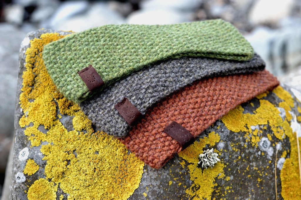 Hand-knit accessories made with Scottish lambswool and inspired by the wild, natural colours of the British landscape and seascape.